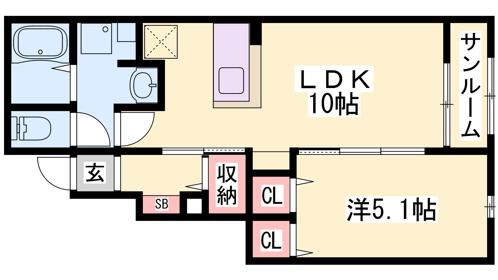 - LDK10帖、洋室5.1帖