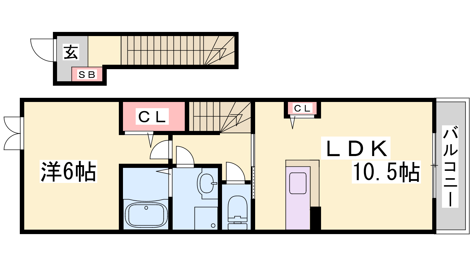 - LDK10.5帖、洋室6帖