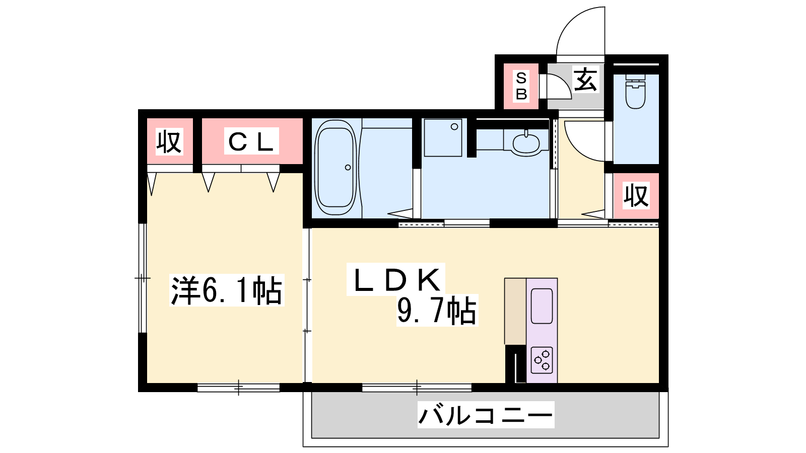 - LDK9.7帖、洋室6.1帖