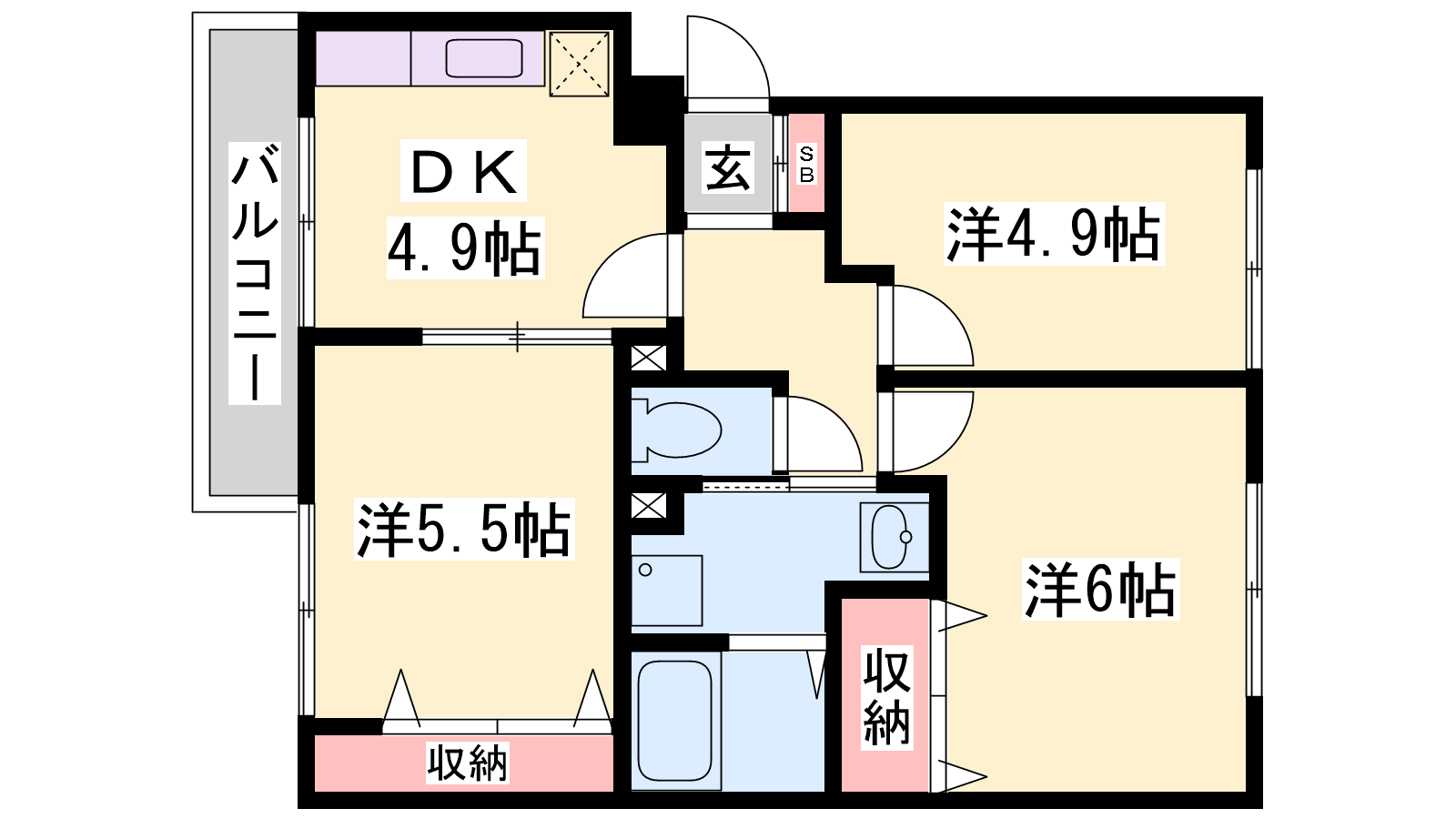 - DK4.9帖、洋室5.5帖、洋室4.9帖、洋室6帖