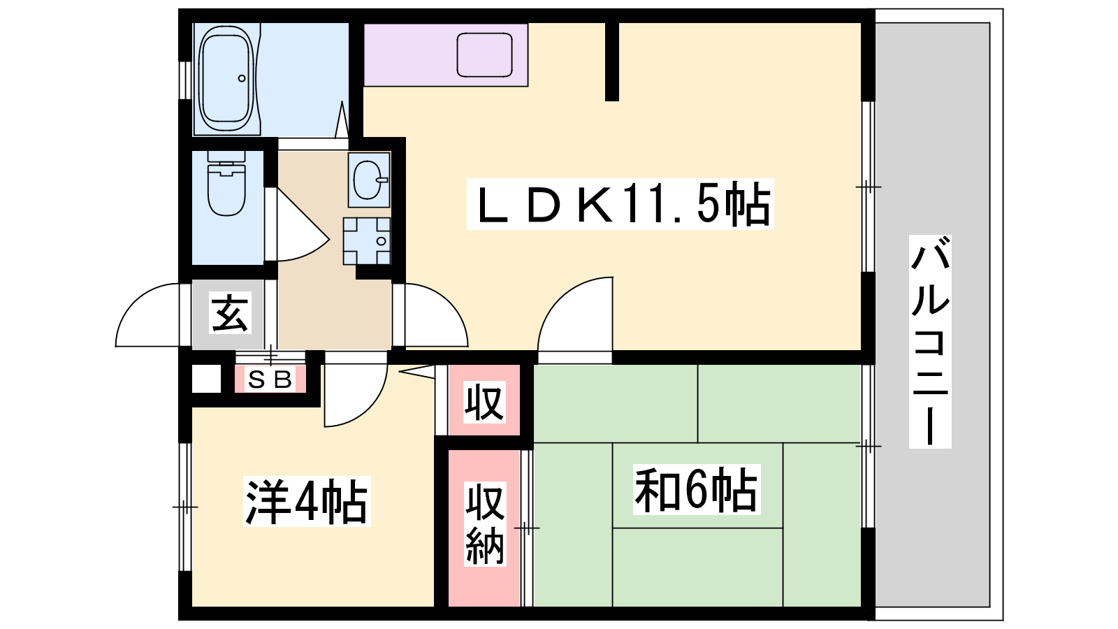 - LDK11.5帖、洋室4帖、和室6帖