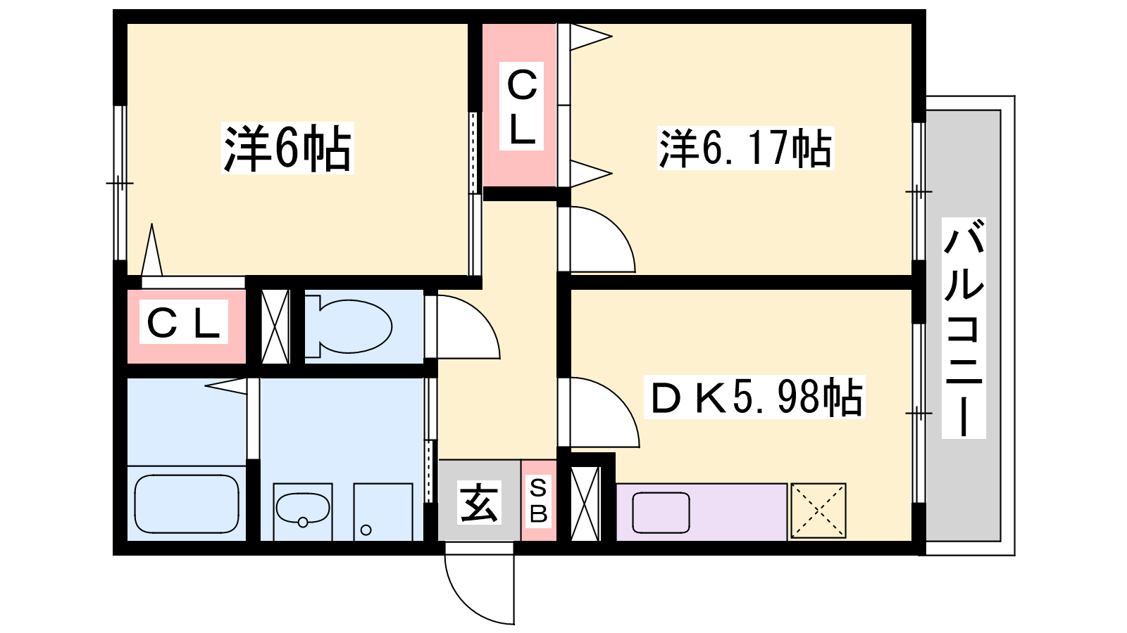 - DK5.98帖、洋室6.17帖、洋室6帖