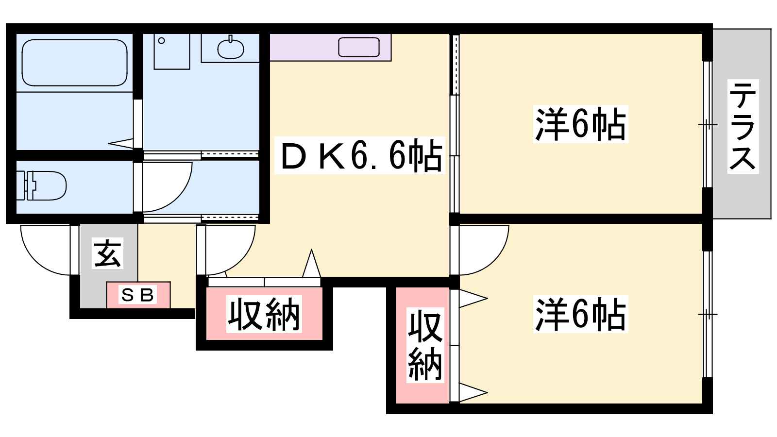 - DK6.6帖、洋室6帖、洋室6帖