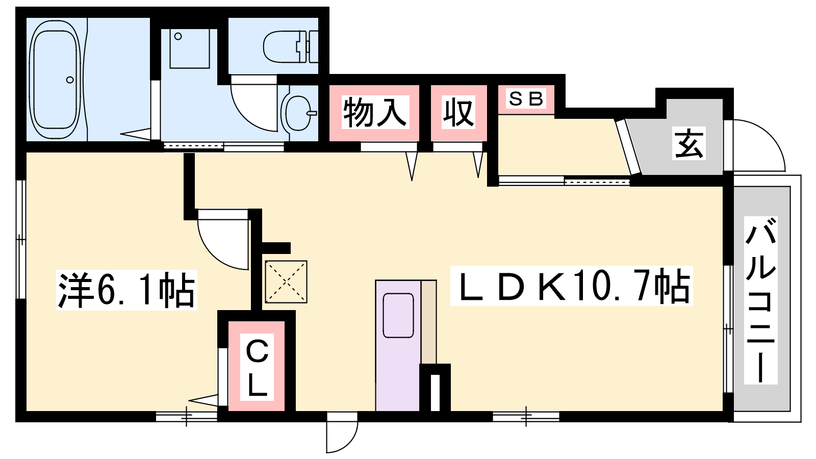 - LDK10.7帖、洋室6.1帖