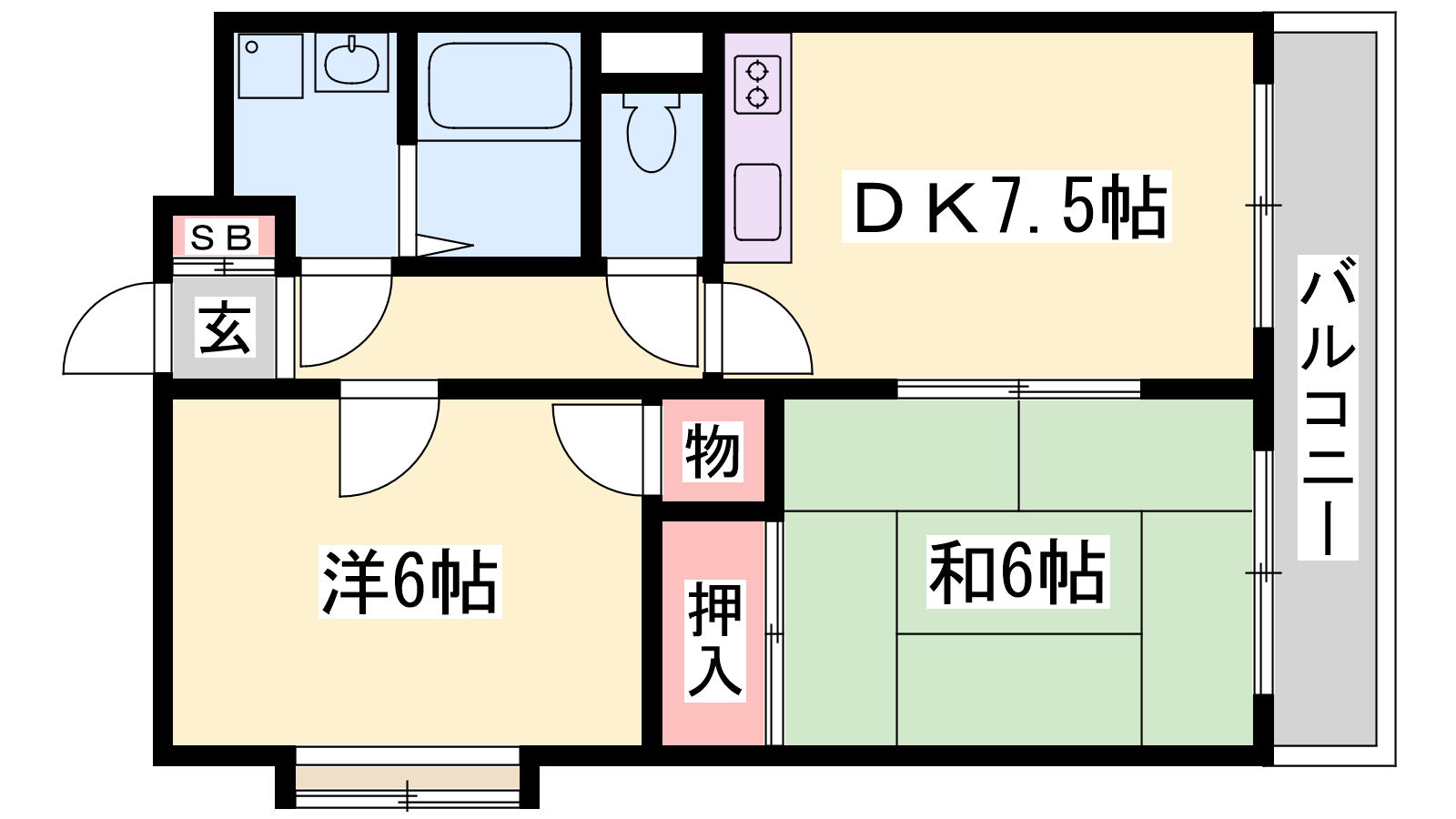 - DK7.5帖、洋室6帖、和室6帖