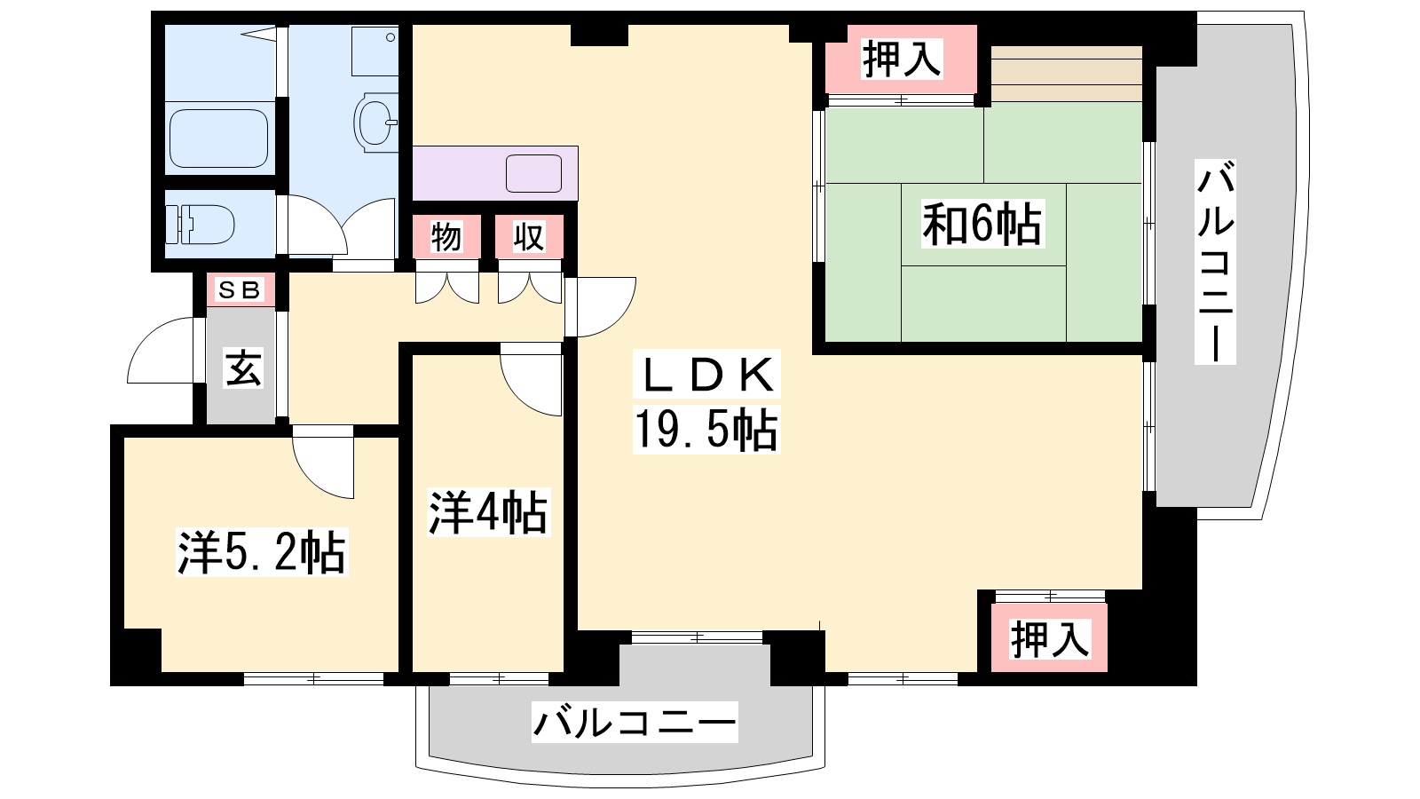 - LDK19.5帖、洋室5.2帖、洋室4帖、和室6帖