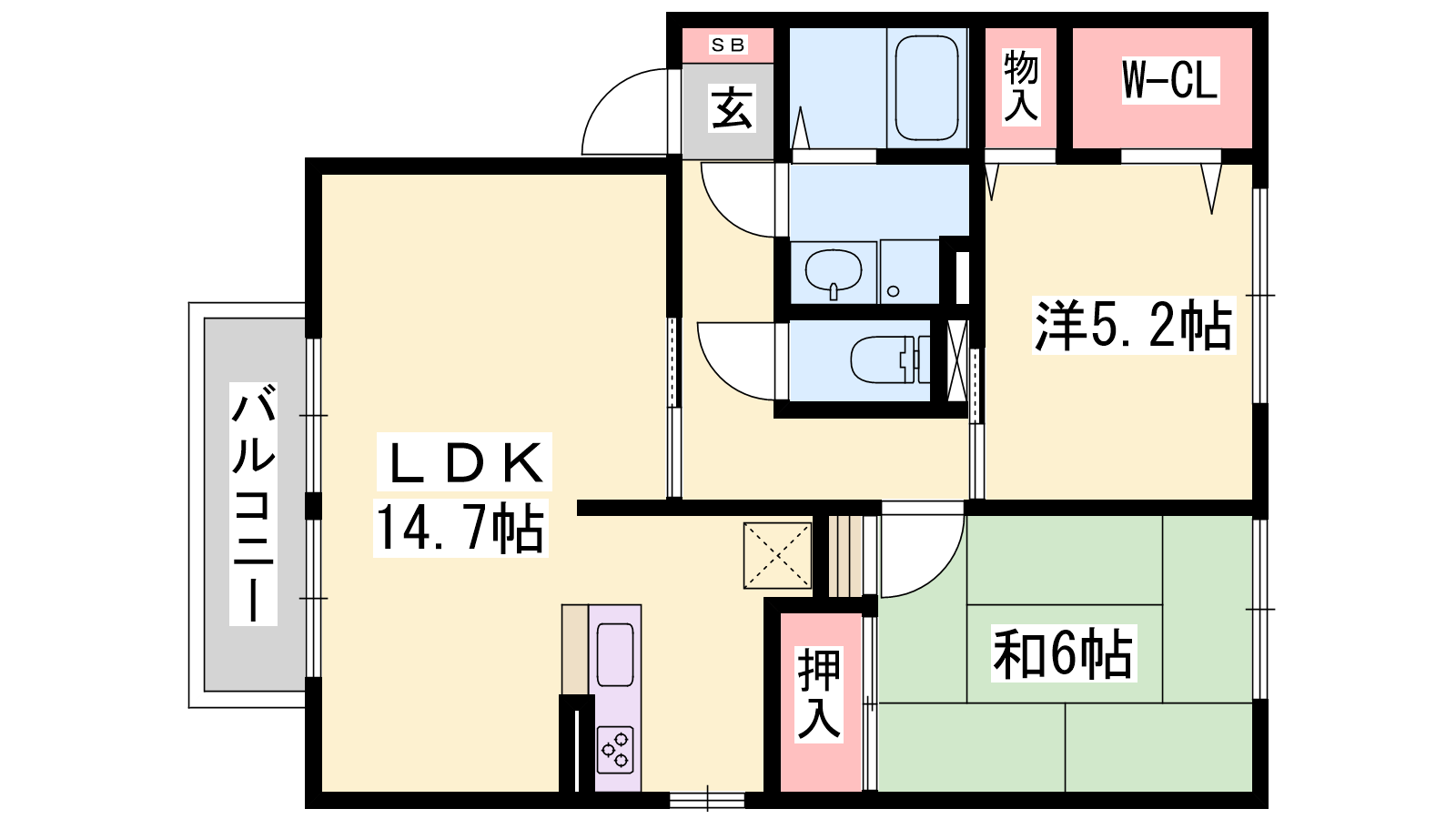 - LDK14.7帖、洋室5.2帖、和室6帖