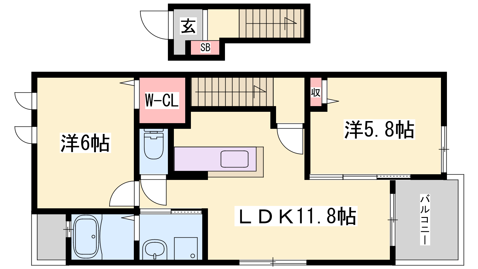 - LDK11.8帖、洋室6帖、洋室5.8帖