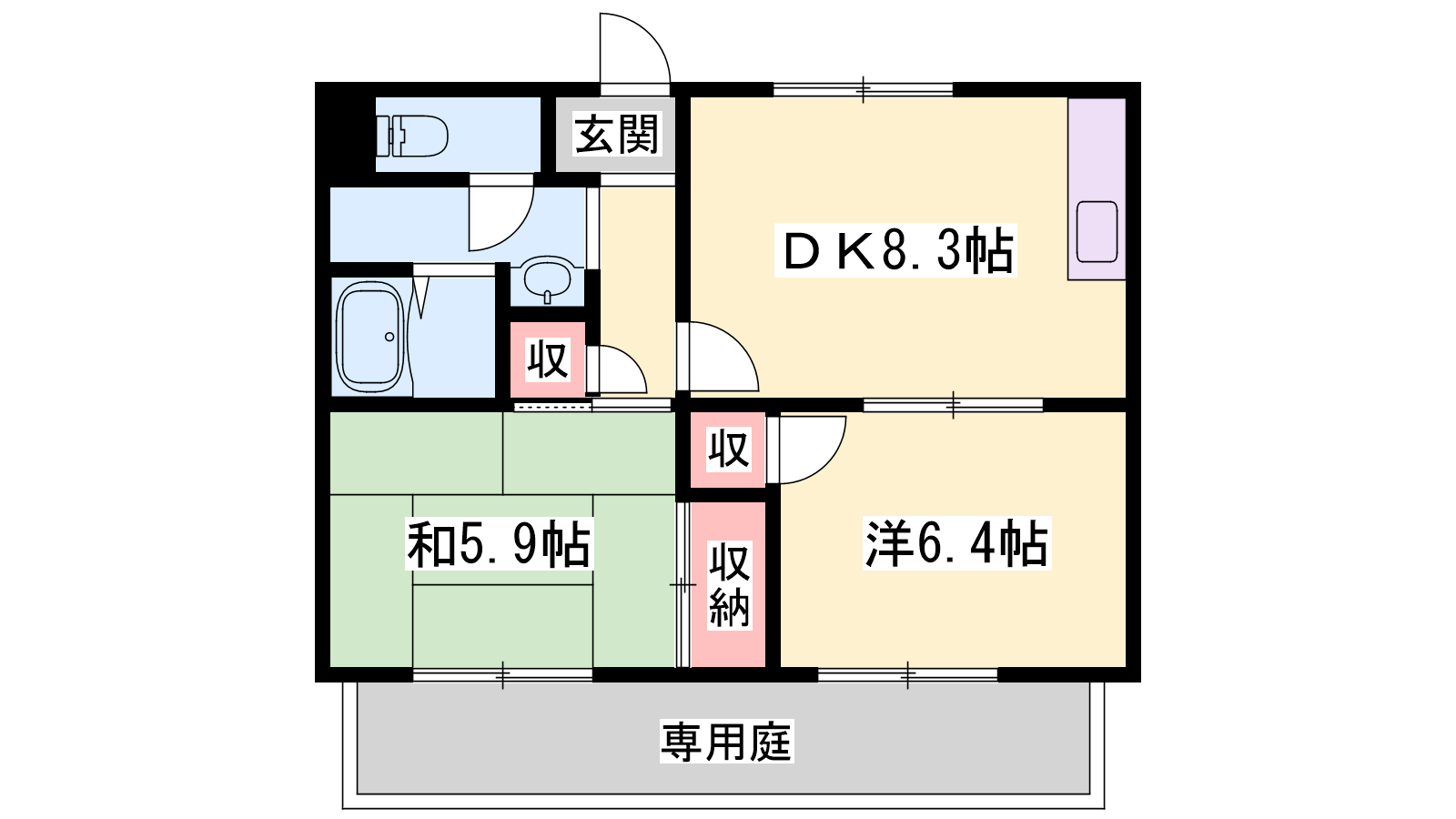 - DK8.3帖、和室5.9帖、洋室6.4帖