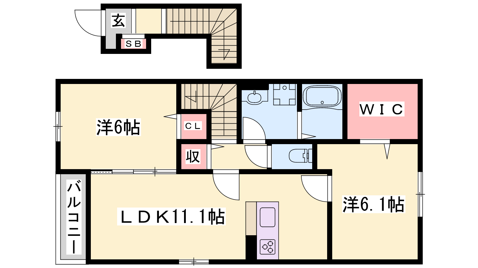 - LDK11.1帖、洋室6.1帖、洋室6帖