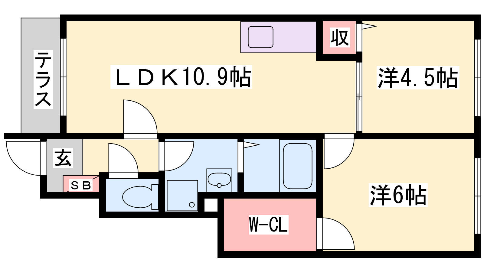 - LDK10.9帖、洋室6帖、洋室4.5帖