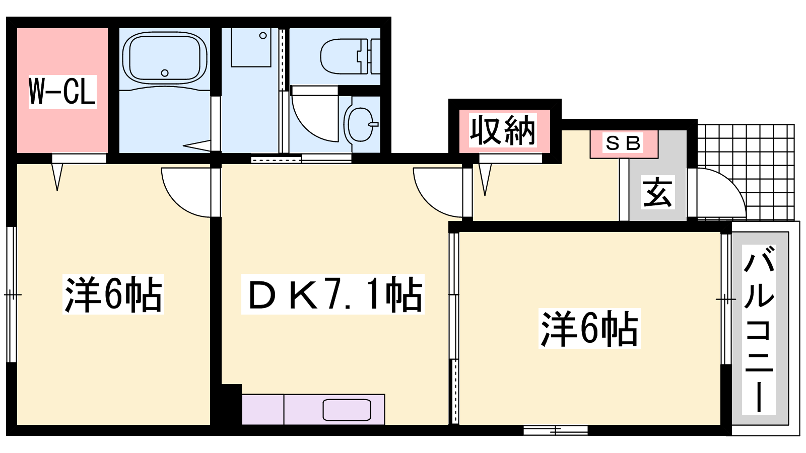 - DK7.1帖、洋室6帖、洋室6帖
