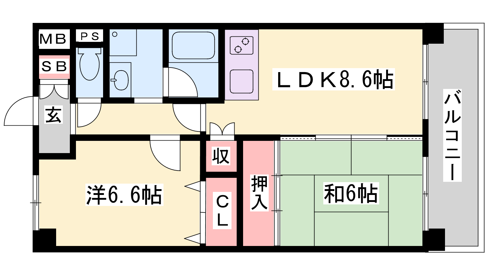 - LDK8.6帖、洋室6.6帖、和室6帖