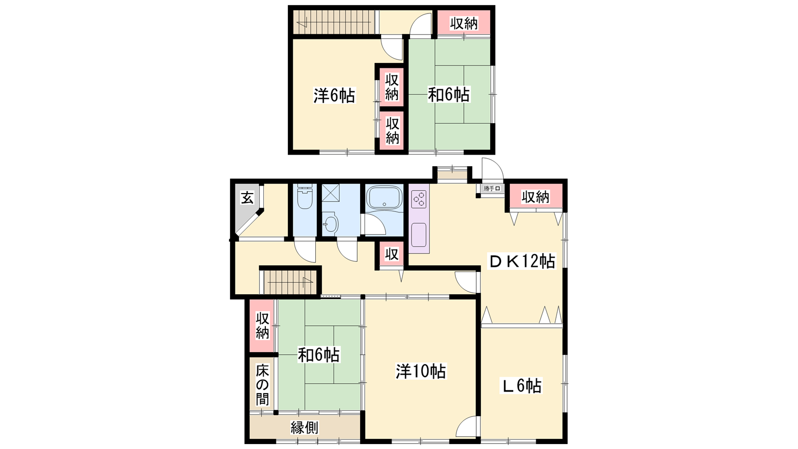 - LDK12.6帖、洋室10帖、洋室6帖、和室6帖、和室6帖