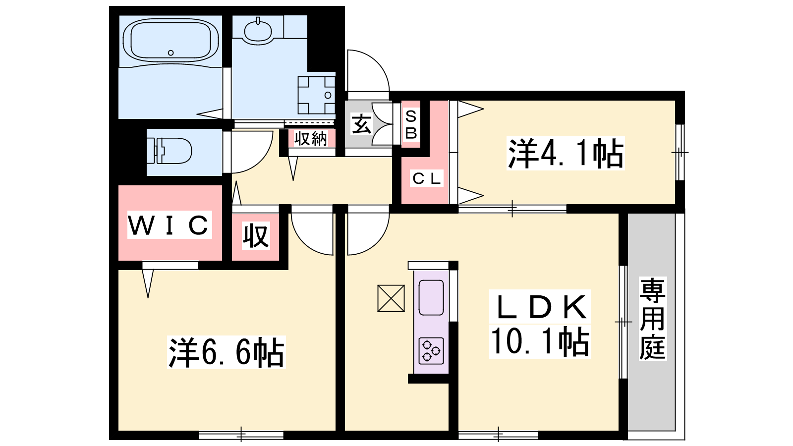 - LDK10.1帖、洋室6.6帖、洋室4.1帖