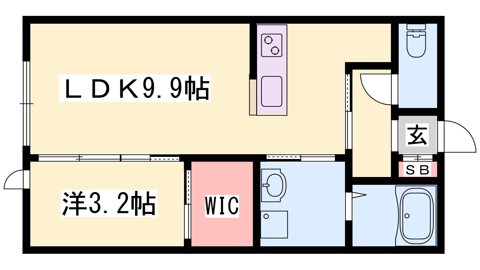 - LDK9.9帖、洋室3.2帖