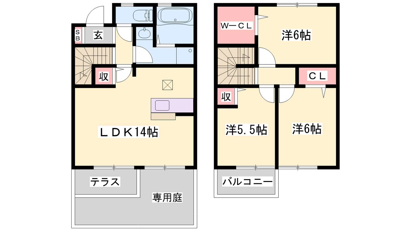 - LDK14帖、洋室6帖、洋室6帖、洋室5.5帖
