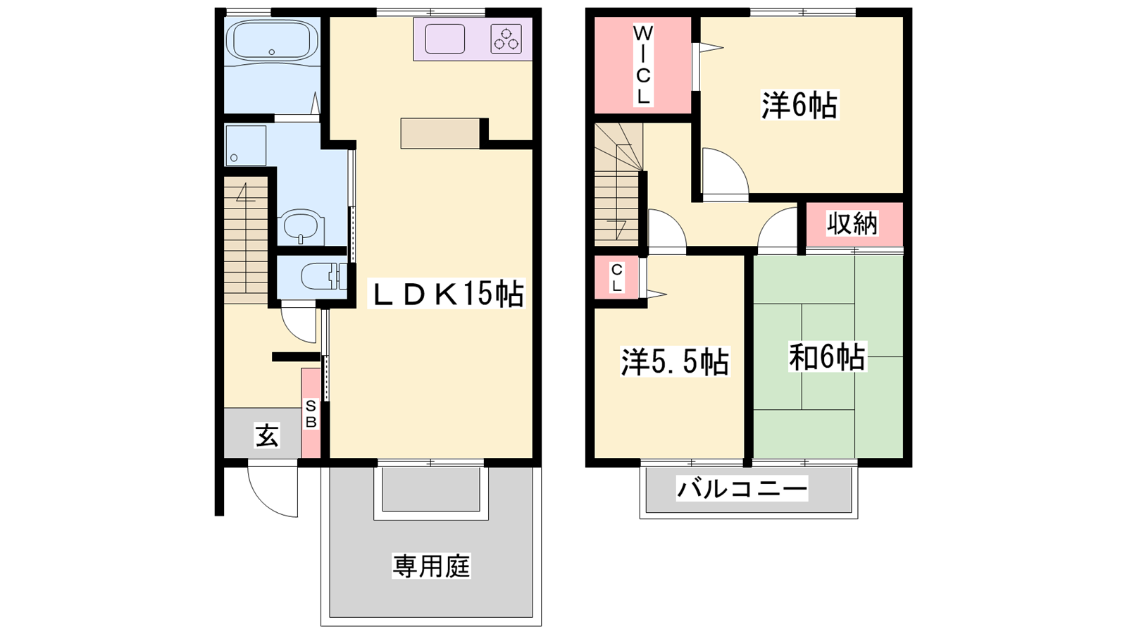 - LDK15帖、洋室6帖、洋室5.5帖、和室6帖