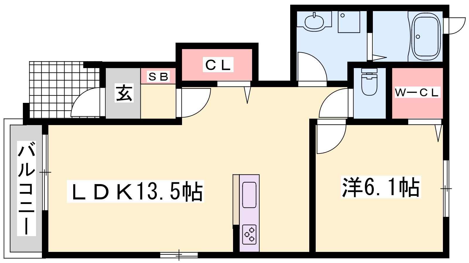 - LDK13.5帖、洋室6.1帖