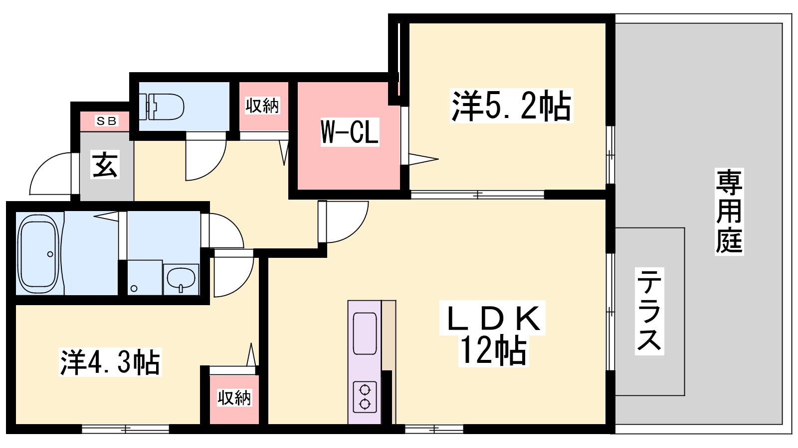 - LDK12帖、洋室5.2帖、洋室4.3帖