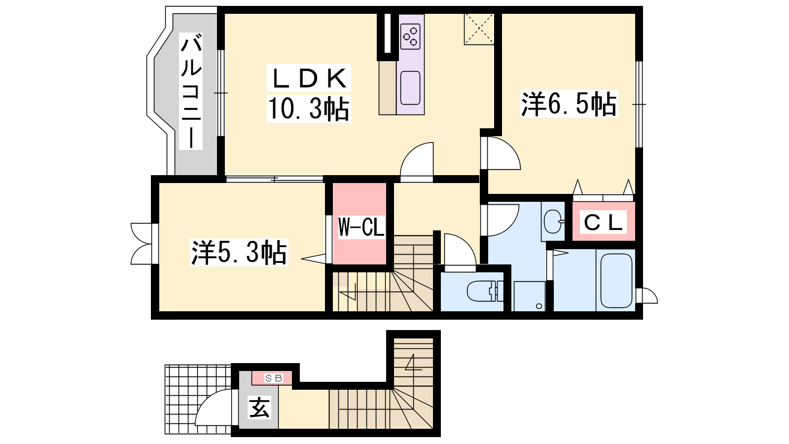 - LDK10.24帖、洋室6.44帖、洋室5.27帖