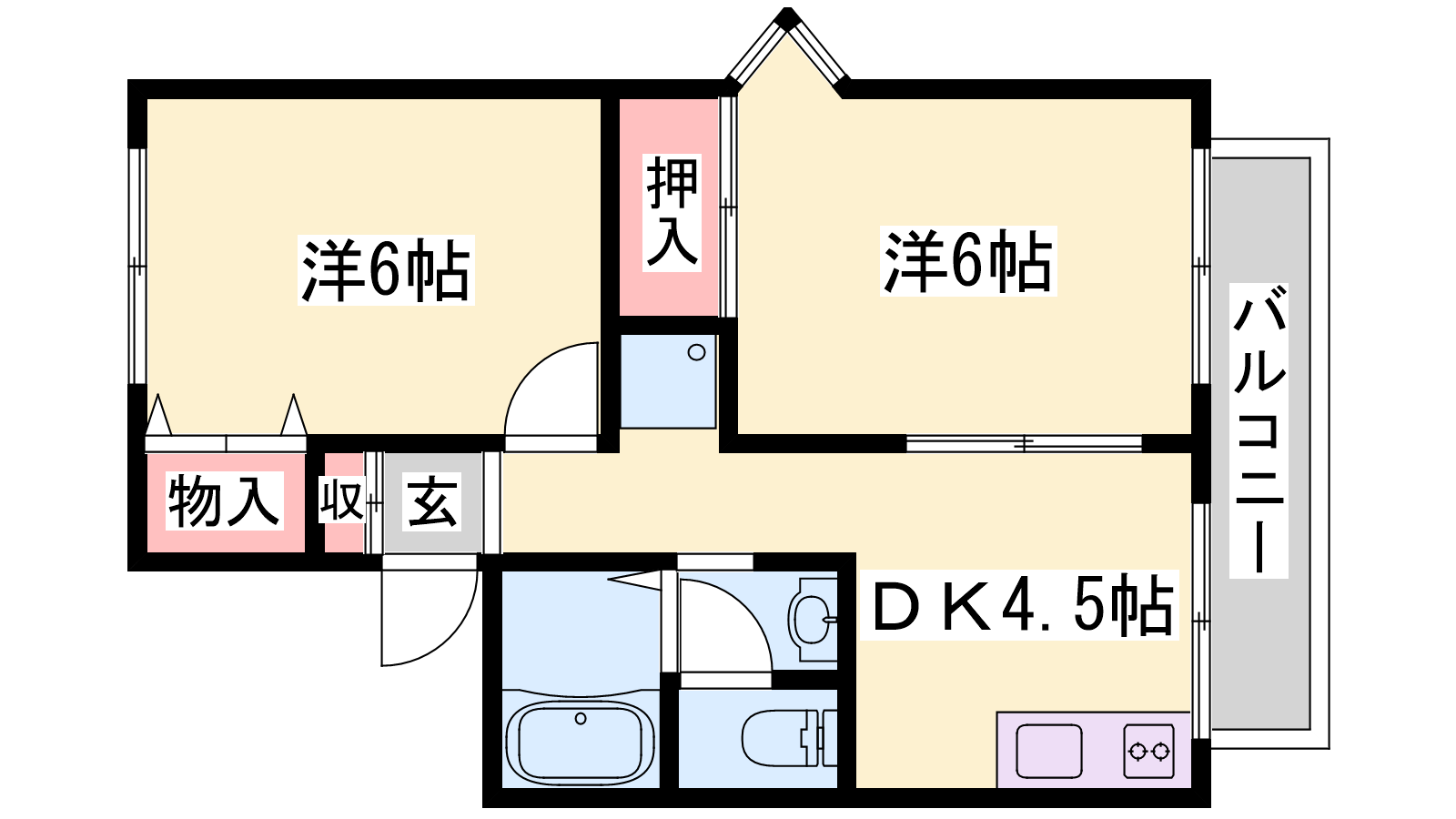 - DK4.5帖、洋室6帖、洋室6帖