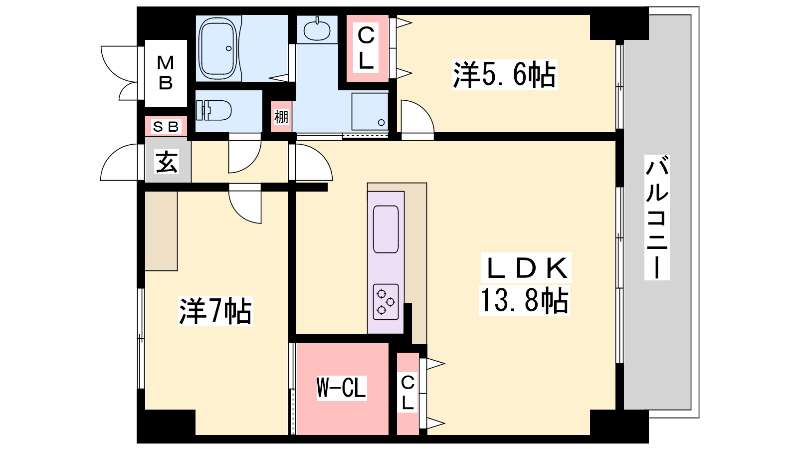 - LDK13.8帖、洋室7帖、洋室5.6帖