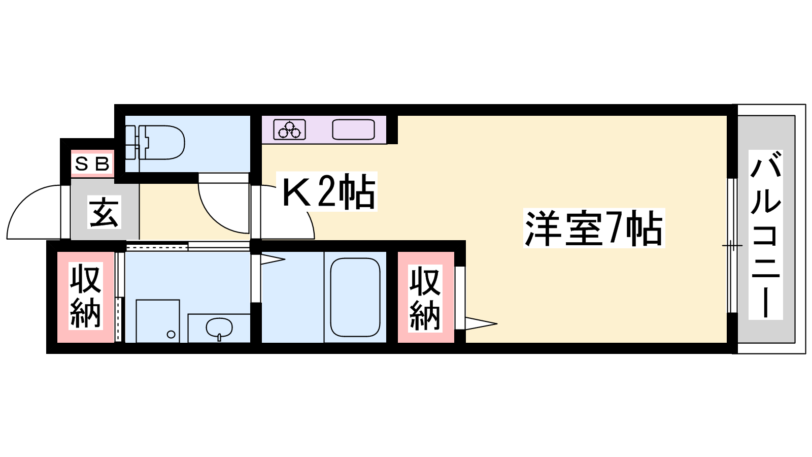 - K2帖、洋室7.1帖