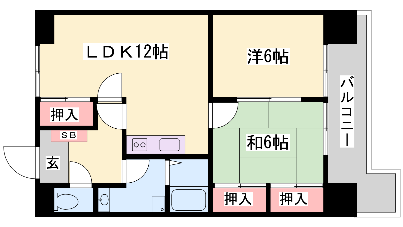 - LDK12帖、洋室6帖、和室6帖
