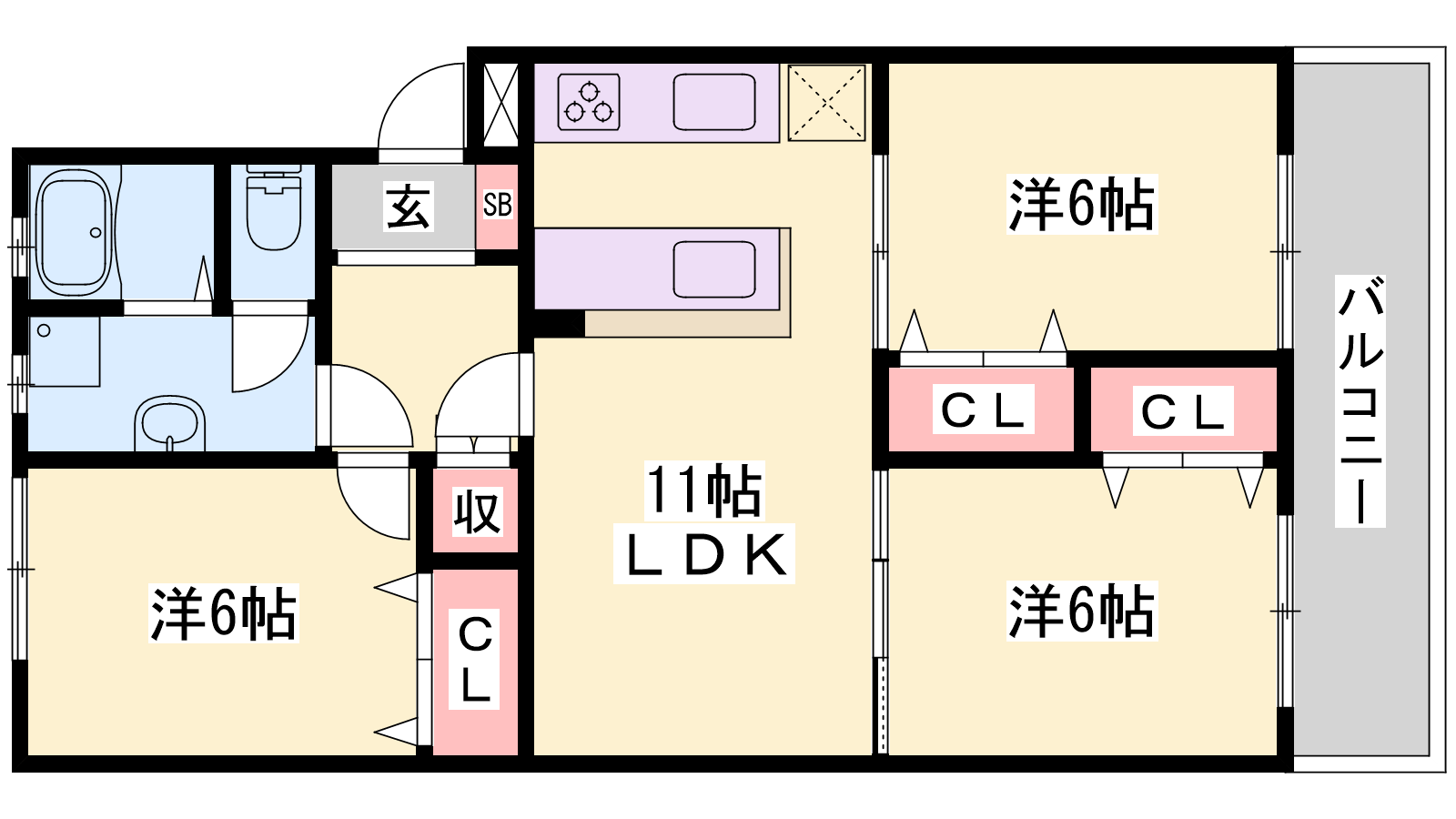 - LDK11帖、洋室6帖、洋室6帖、洋室6帖