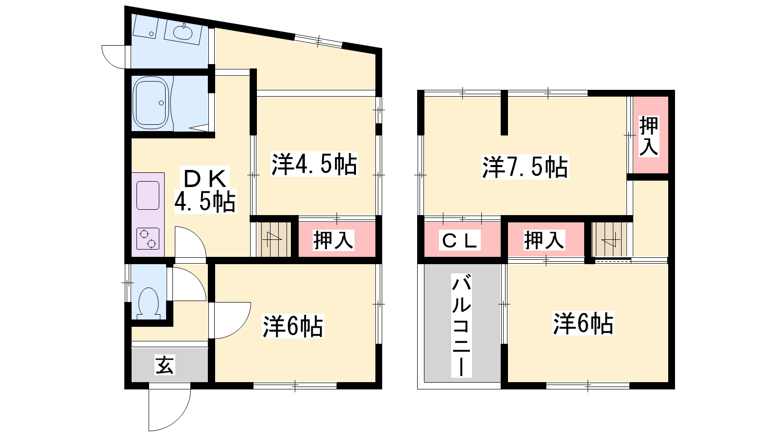 - DK4.5帖、洋室7.5帖、洋室6帖、洋室6帖、洋室4.5帖
