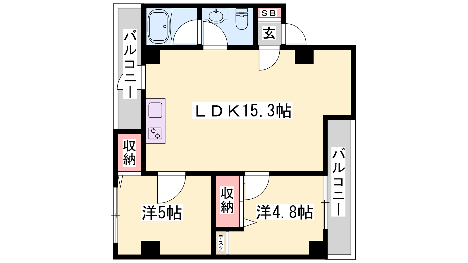 - LDK15.3帖、洋室5帖、洋室4.8帖