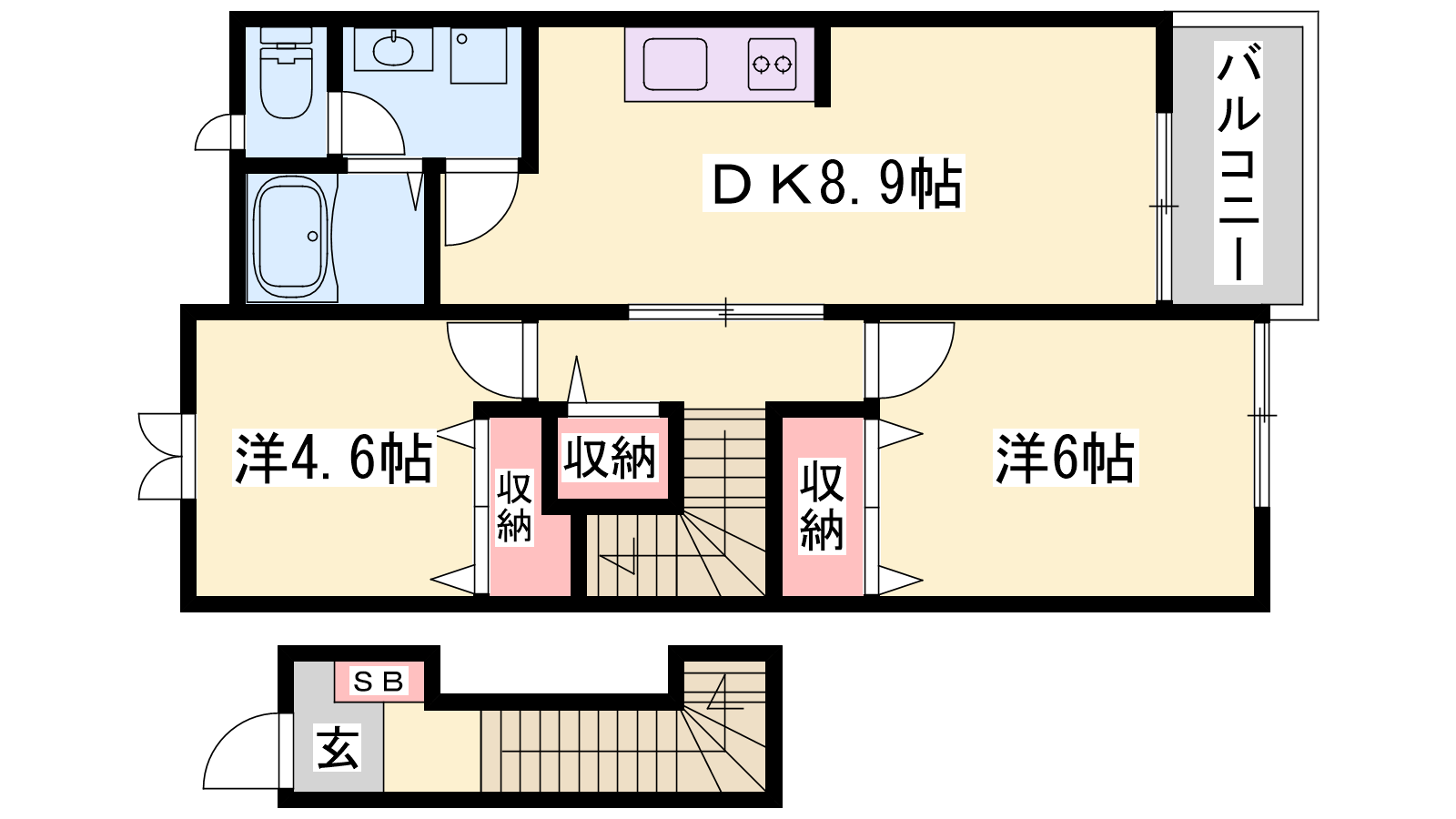 - DK8.9帖、洋室6帖、洋室4.6帖