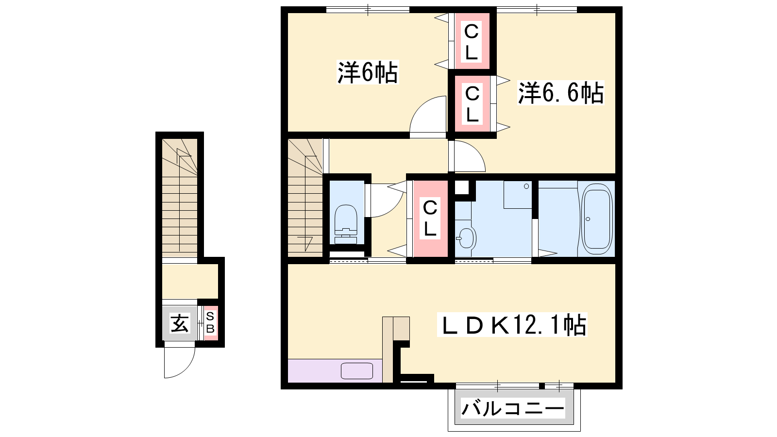 - LDK12.1帖、洋室6.6帖、洋室6帖