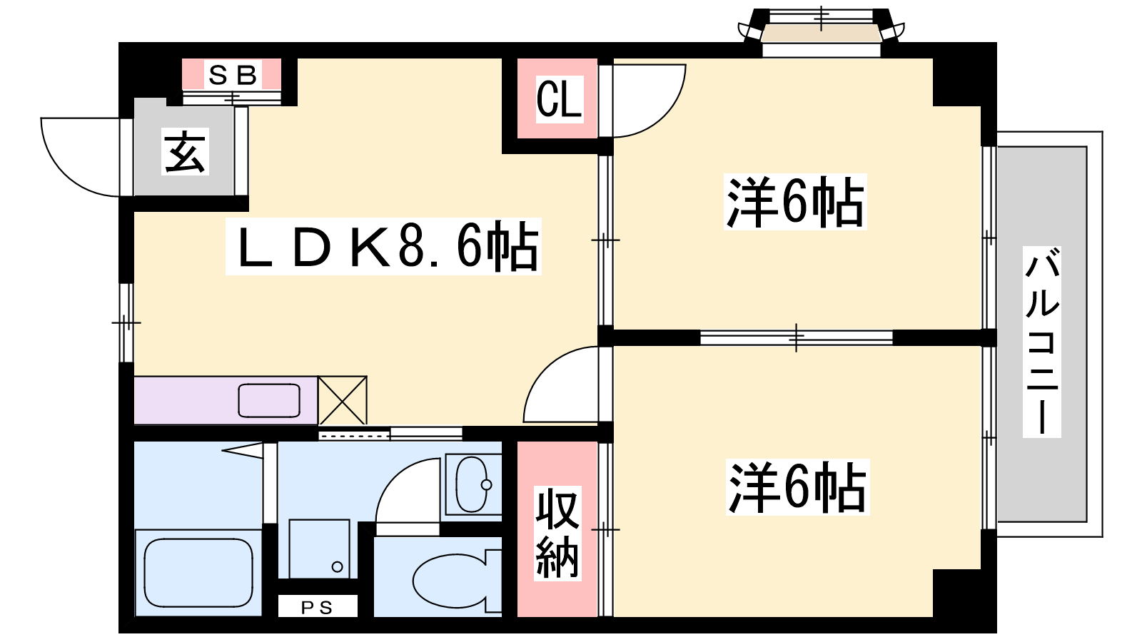 - DK8.6帖、洋室6帖、洋室6帖