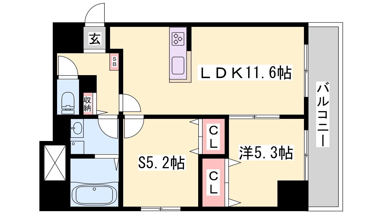 - LDK11.6帖、洋室5.3帖、S5.2帖