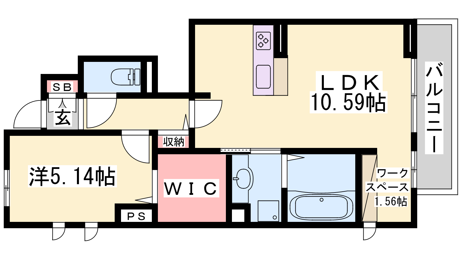 - LDK10.59帖、洋室5.14帖、S1.56帖