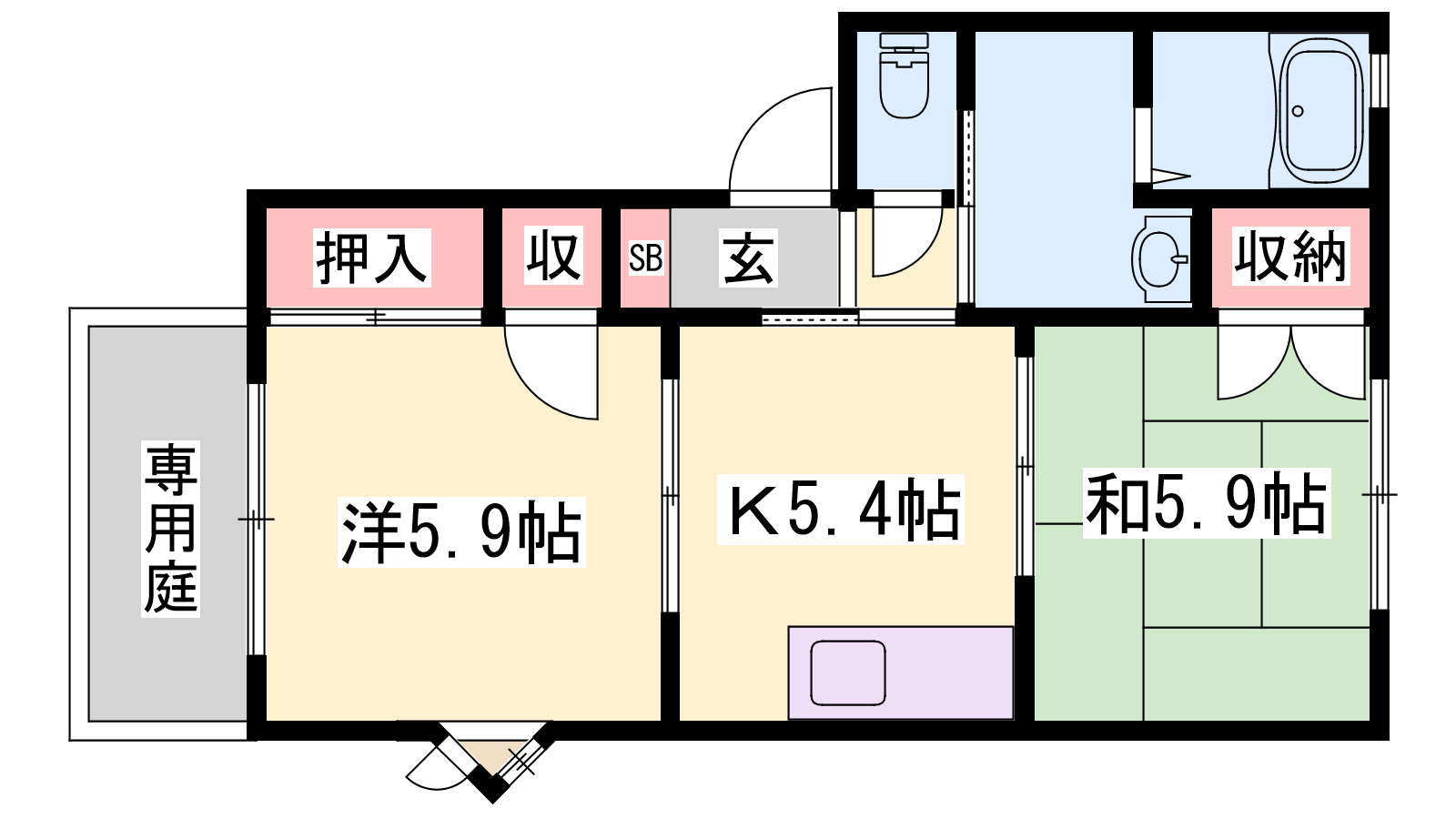 - K5.4帖、洋室5.9帖、和室5.9帖