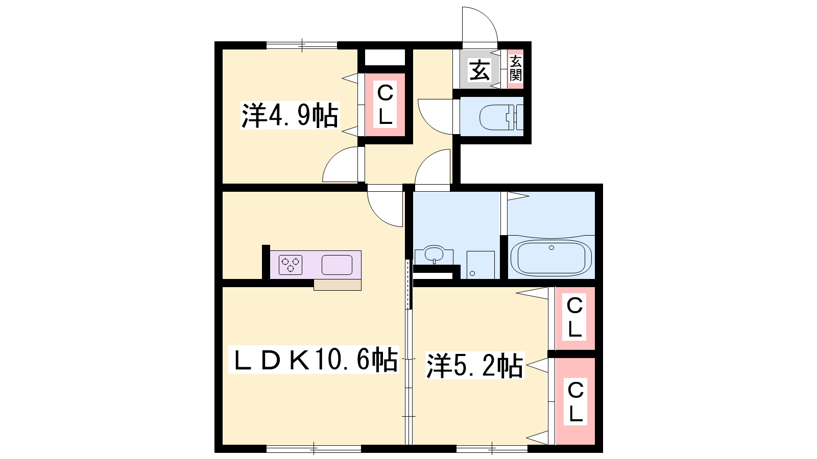 - LDK10.6帖、洋室5.2帖、洋室4.9帖