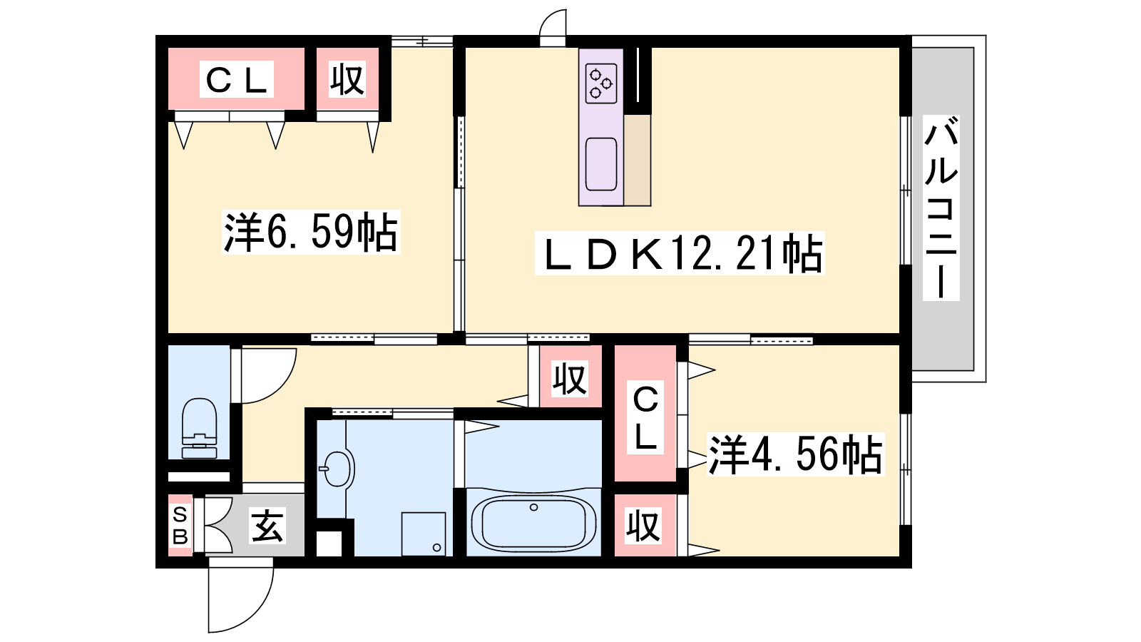 - LDK12.21帖、洋室6.59帖、洋室4.56帖