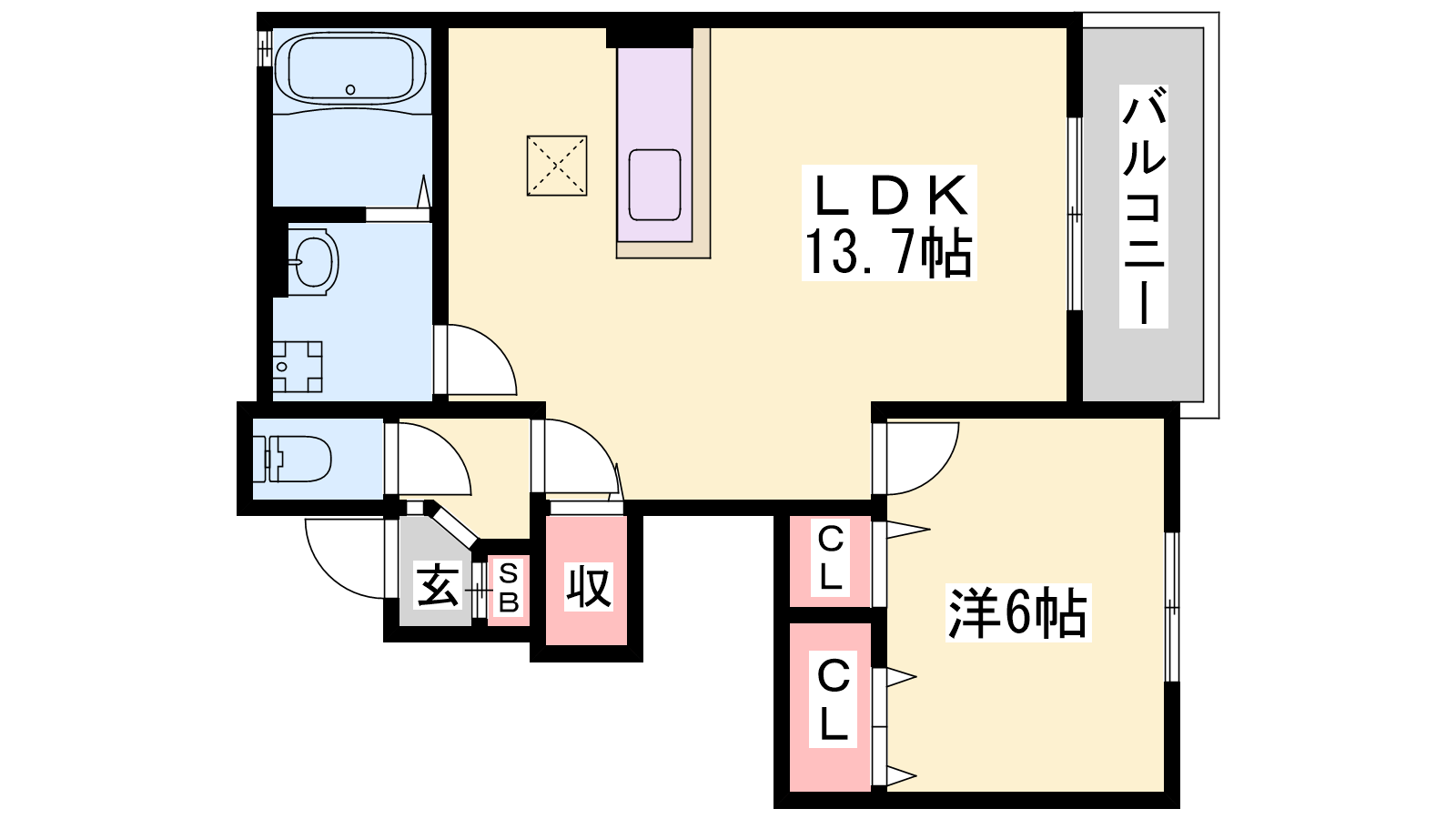 - LDK13.7帖、洋室6帖