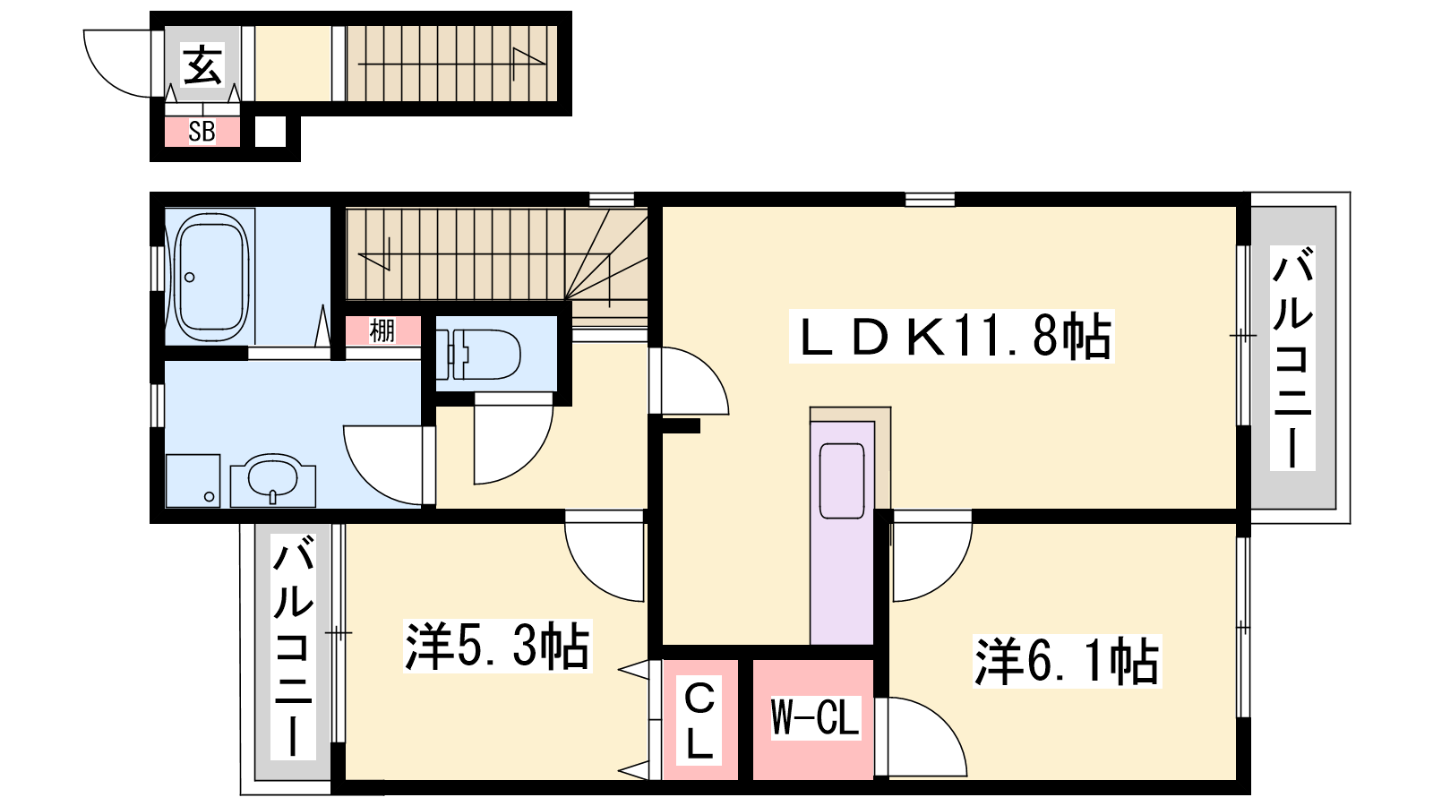 - LDK11.8帖、洋室6.1帖、洋室5.3帖