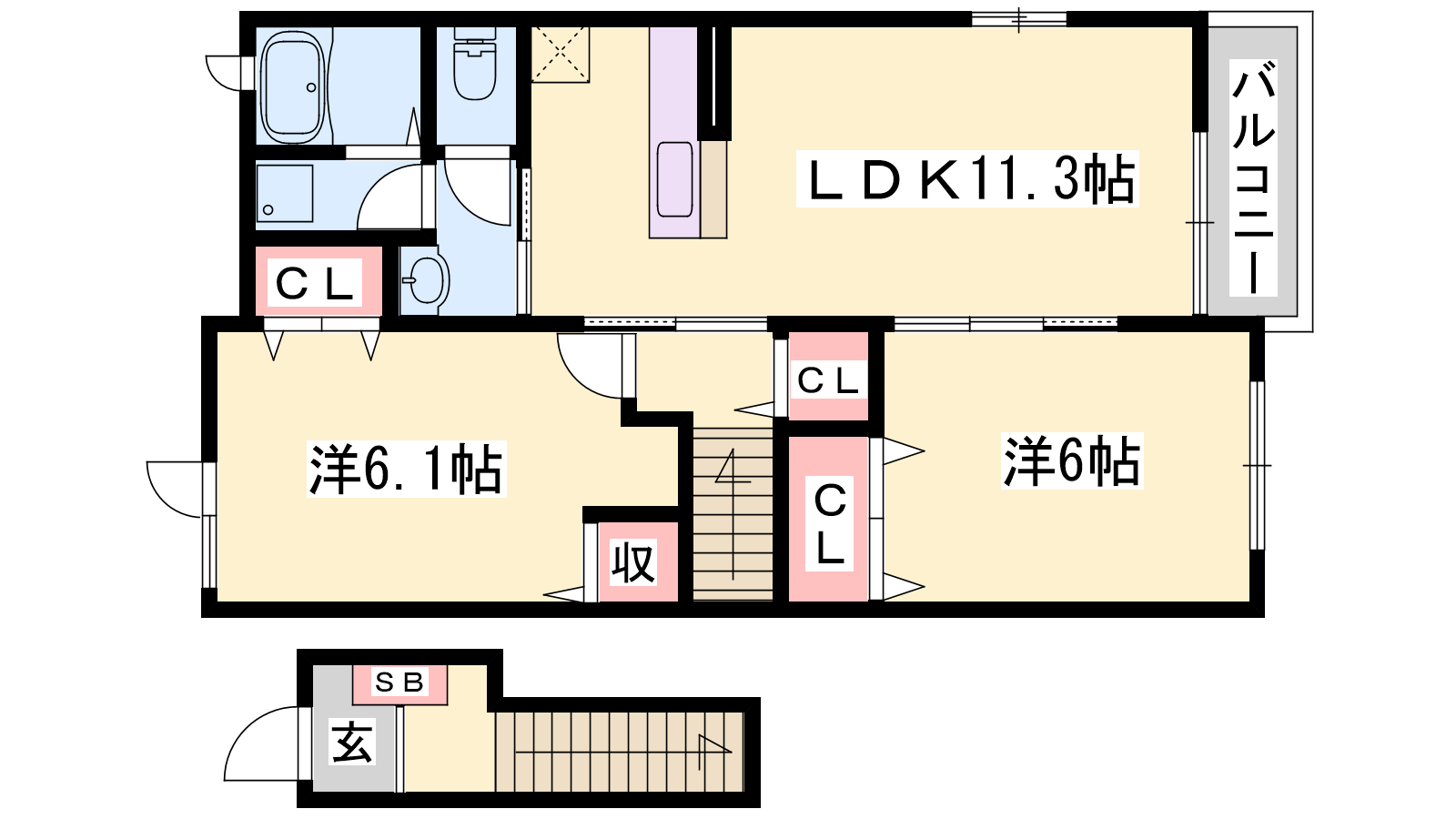- LDK11.3帖、洋室6帖、洋室6.1帖