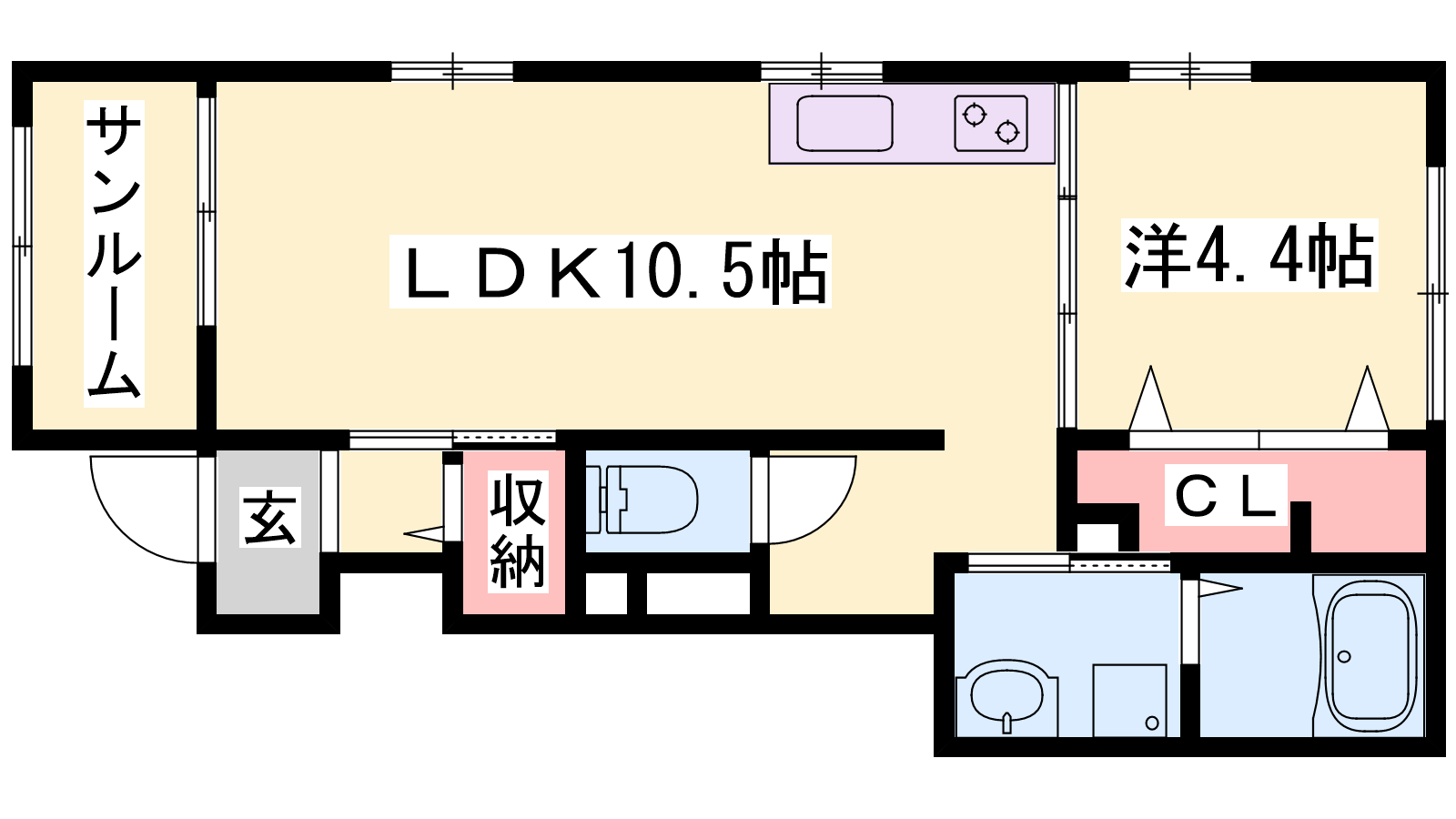 - LDK10.5帖、洋室4.4帖
