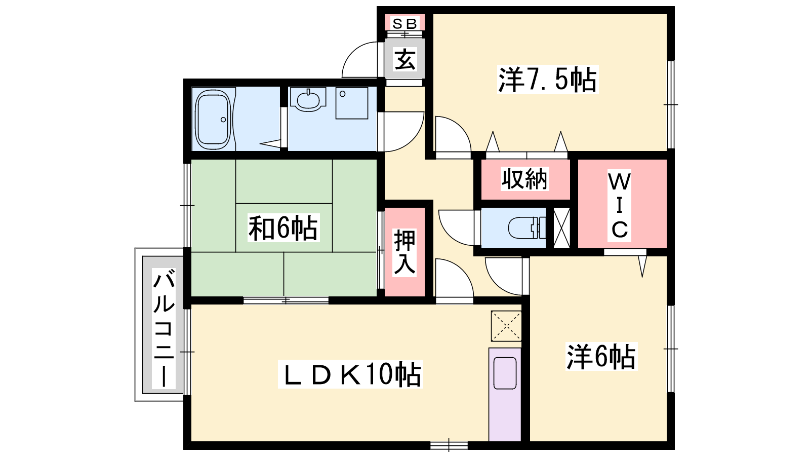 - LDK10帖、洋室6帖、洋室7.5帖、和室6帖