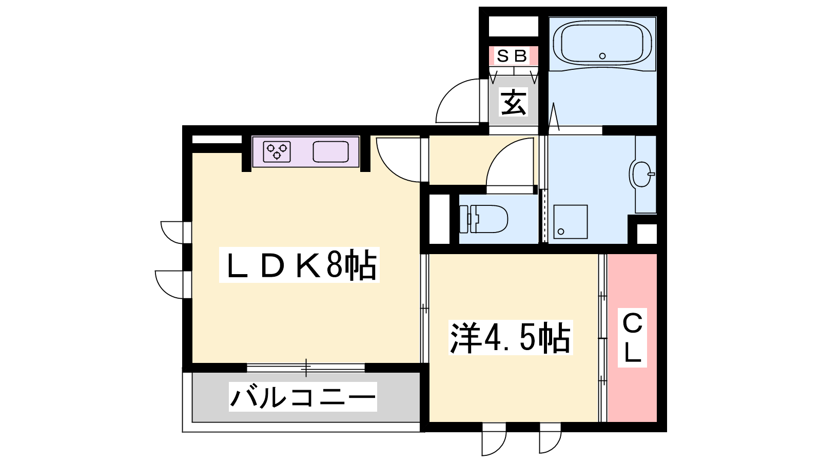 - LDK8帖、洋室4.5帖