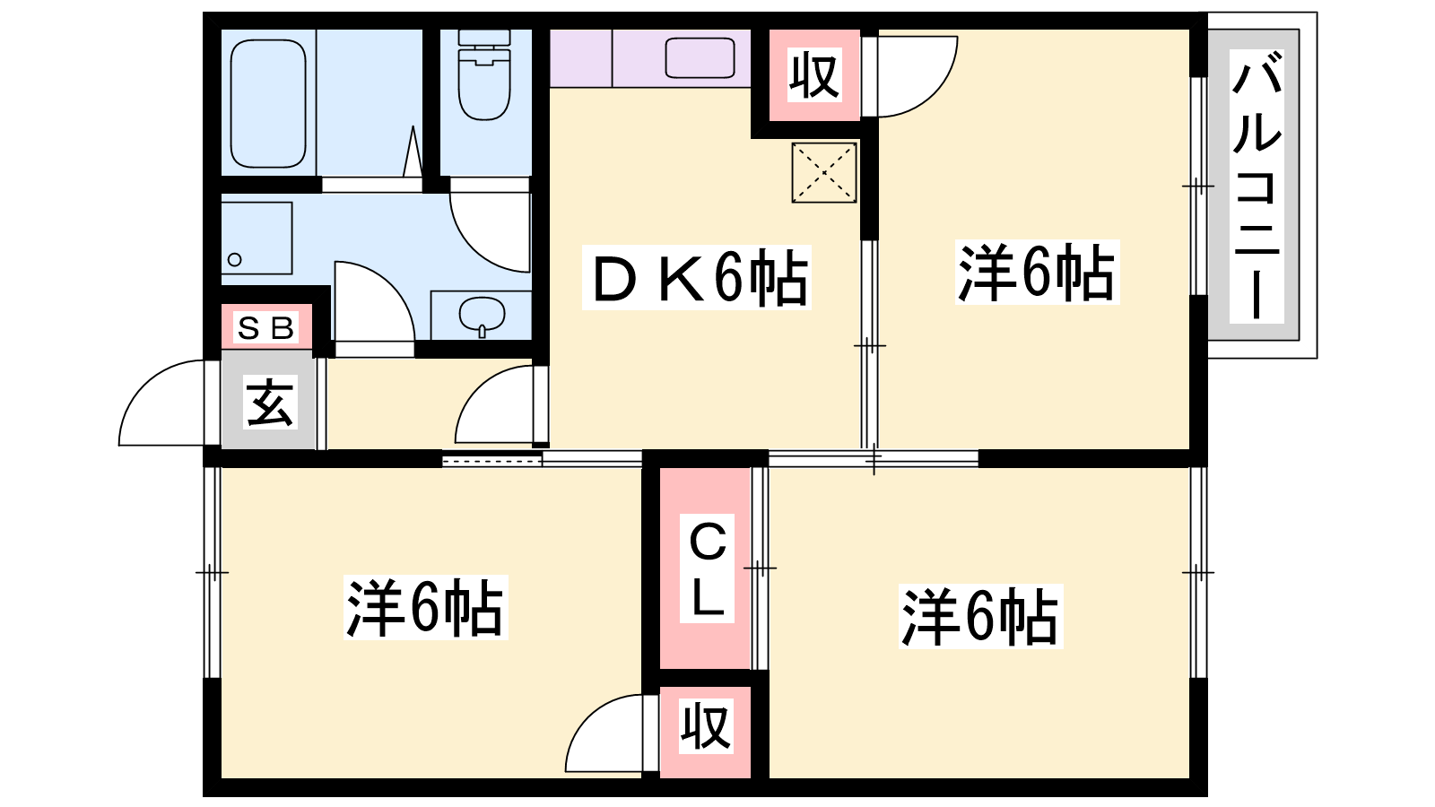 - DK6帖、洋室6帖、洋室6帖、洋室6帖
