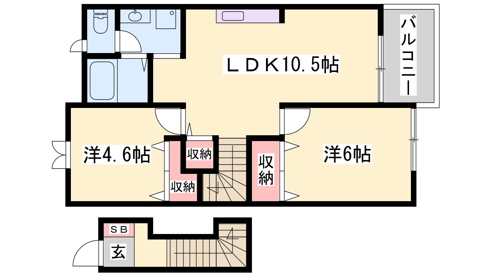 - LDK10.5帖、洋室6帖、洋室4.6帖