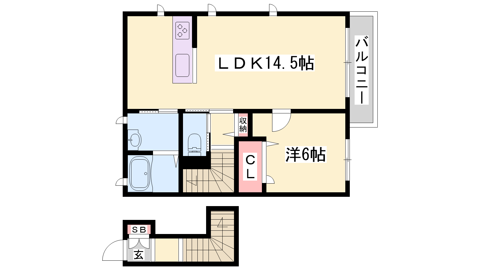 - LDK14.5帖、洋室6帖