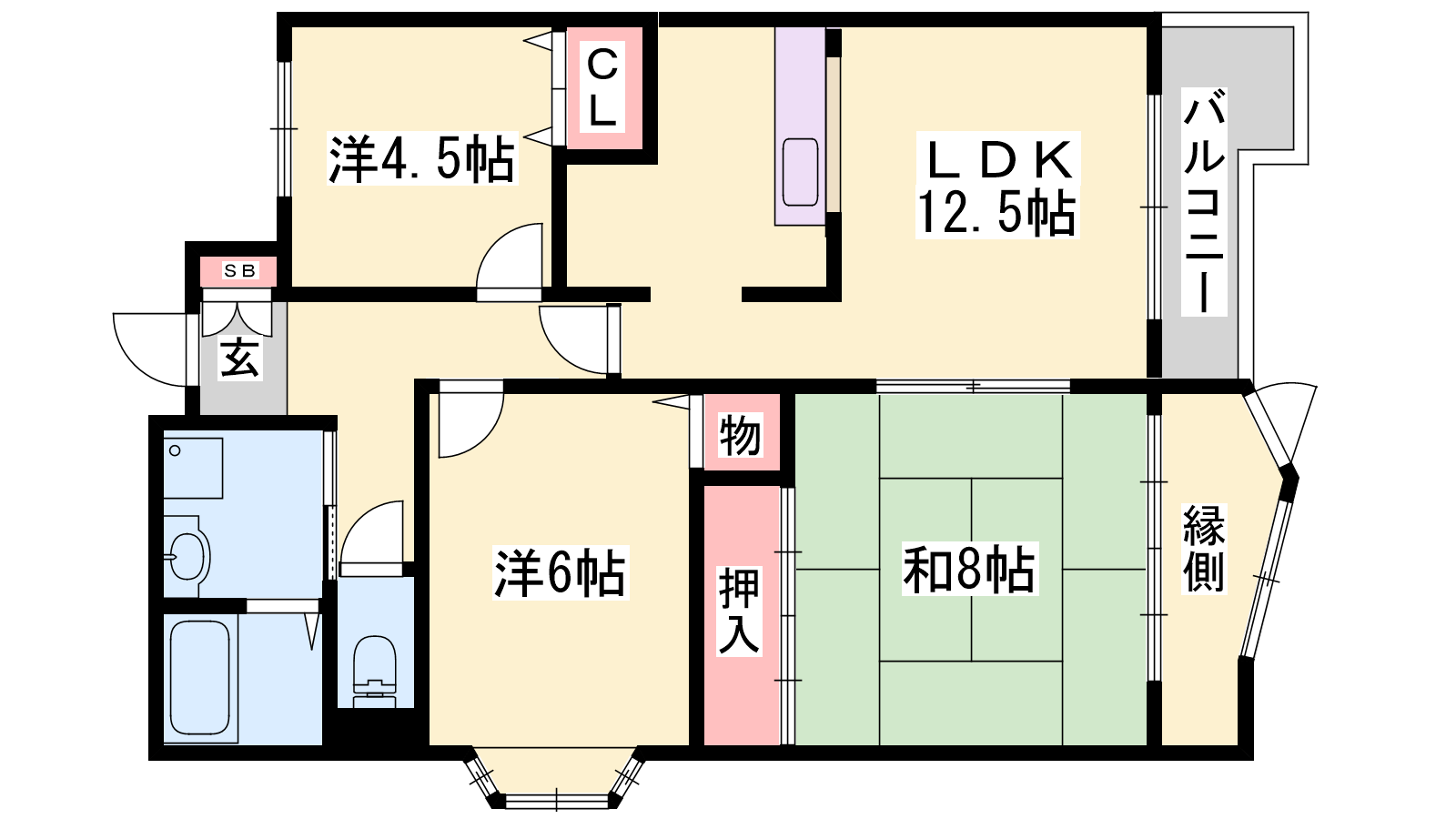 - LDK9.5帖、洋室6帖、洋室4.5帖、和室8帖